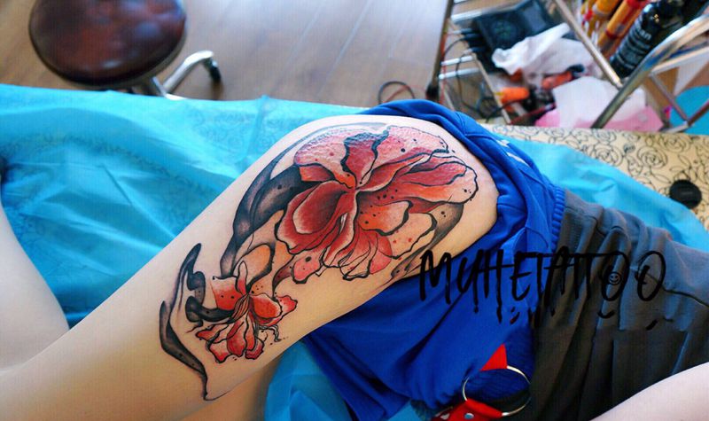 当前位置: 首页 >黑龙江省哈尔滨市纹身店-木禾 tattoo纹身纹身图案>水墨丹青花纹身图片_腿部水彩水墨花纹身图案