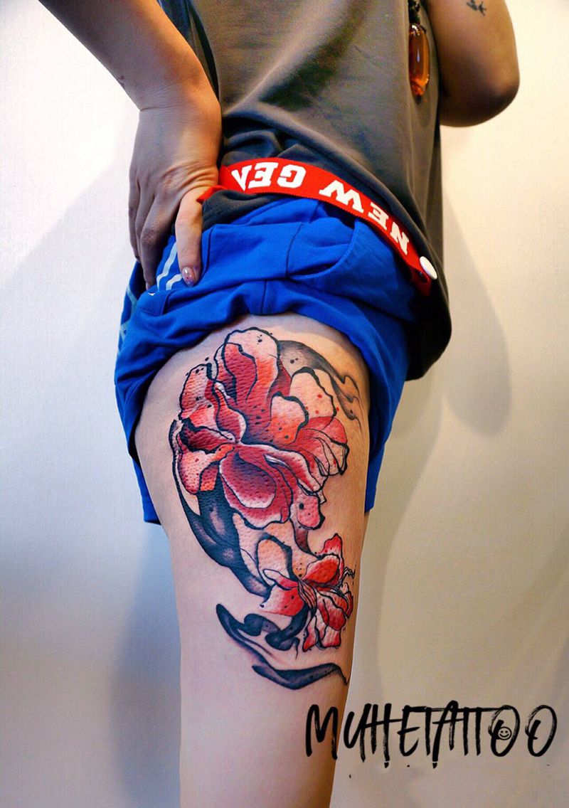 当前位置: 首页 >黑龙江省哈尔滨市纹身店-木禾 tattoo纹身纹身图案>水墨丹青花纹身图片_腿部水彩水墨花纹身图案