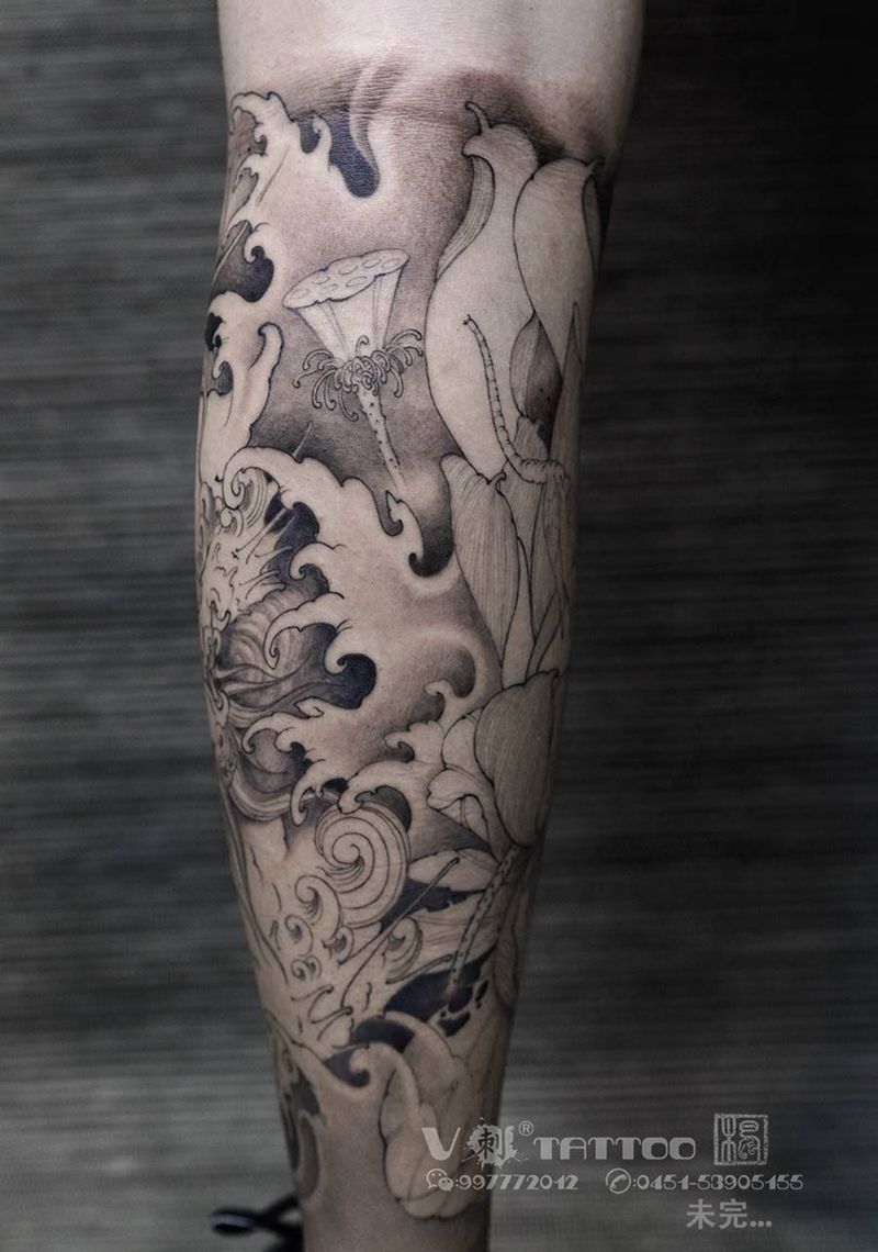 • T网红王老大花腿龙纹身图片_腿部新传统纹身图案