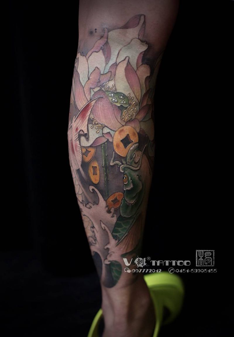 一组15张莲花纹身手