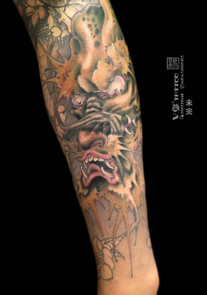 • T网红王老大花腿龙纹身图片_腿部新传统纹身图案