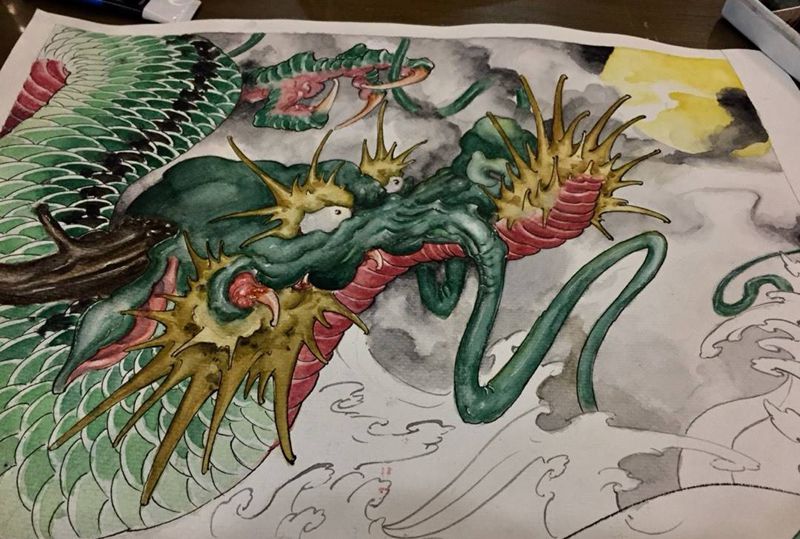 当前位置: 首页 >黑龙江省哈尔滨市纹身店-V刺tattoo纹身图案>蛟龙闹海.纹身图片