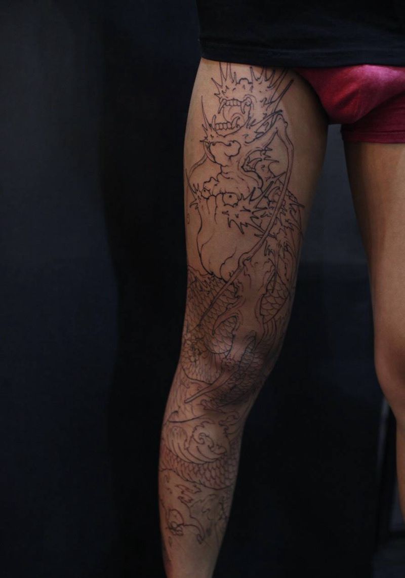 • T网红王老大花腿龙纹身图片_腿部新传统纹身图案