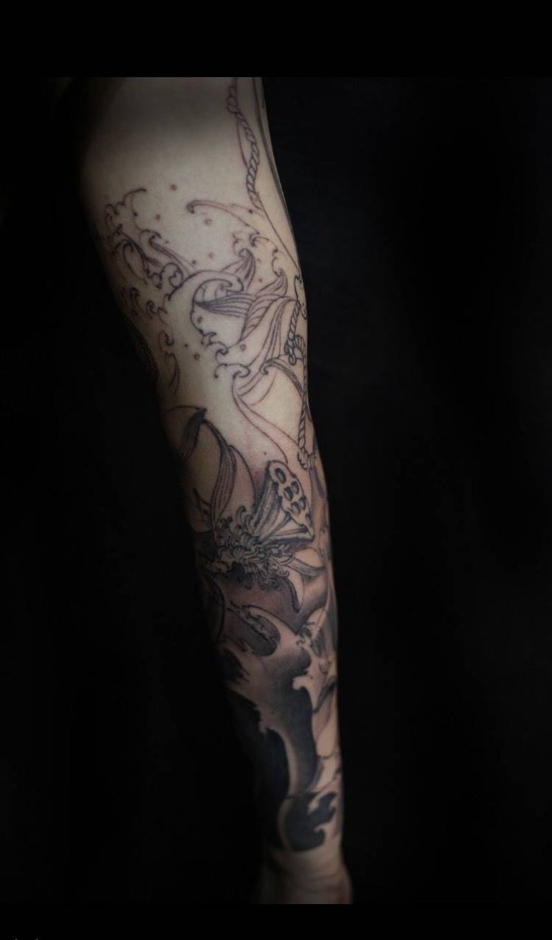 当前位置: 首页 >黑龙江省哈尔滨市纹身店-V刺tattoo纹身图案>花臂 (般若荷花)纹身图片