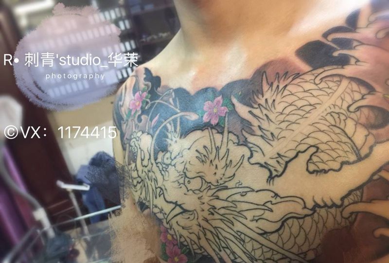 当前位置: 首页 >黑龙江省哈尔滨市纹身店-彫冕刺青纹身图案>苍龙出水 大V纹身图片