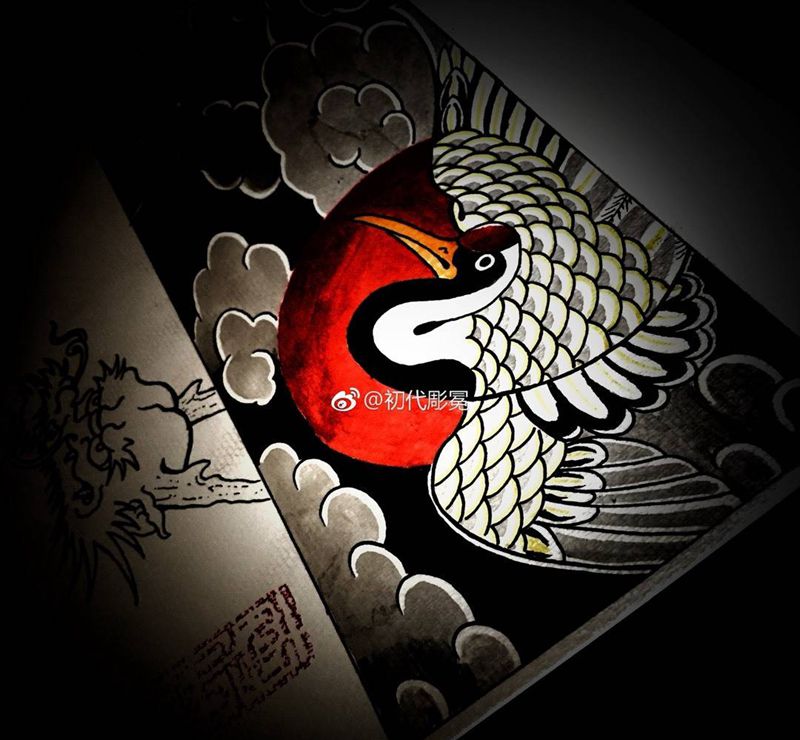 臂环(仙鹤)纹身图片_手臂老传统仙鹤纹身图案