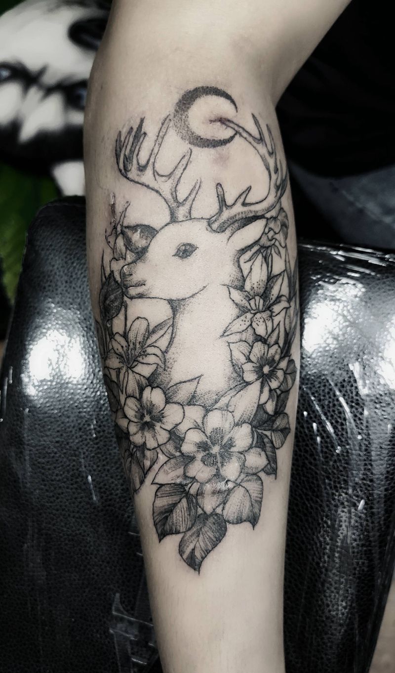 当前位置: 首页 >黑龙江省哈尔滨市纹身店-金艺堂纹身工作室纹身图案>鹿纹身图片_手臂纹身图案