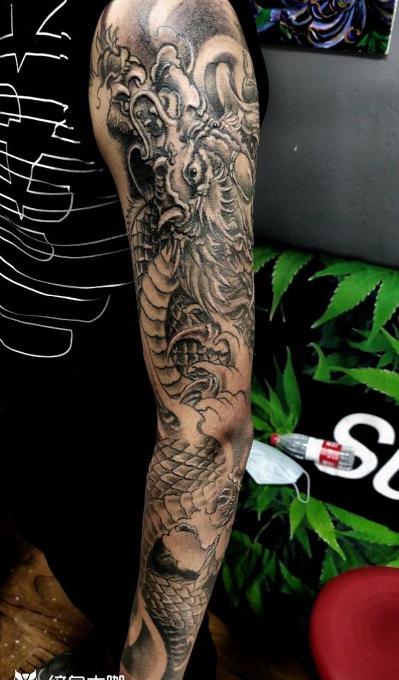 当前位置: 首页 >黑龙江省哈尔滨市纹身店-金艺堂纹身工作室纹身图案>传统花臂,龙纹身图片_手臂新传统纹身图案