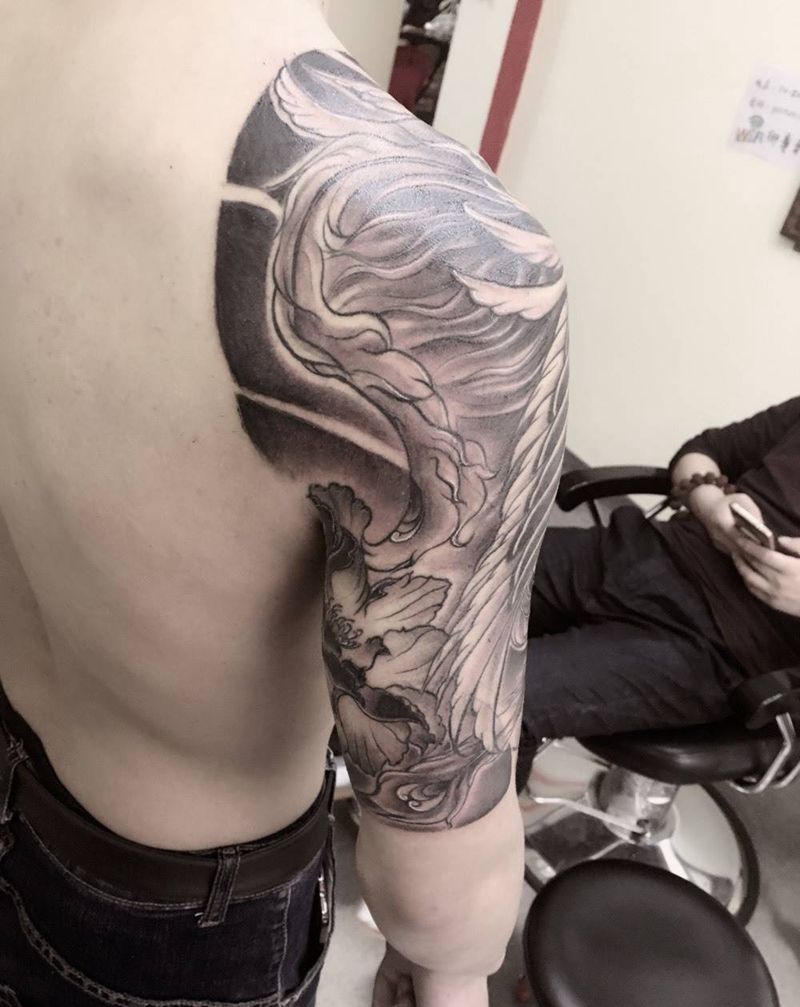 当前位置: 首页 >黑龙江省哈尔滨市纹身店-金艺堂纹身工作室纹身图案>半甲 凤凰纹身图片