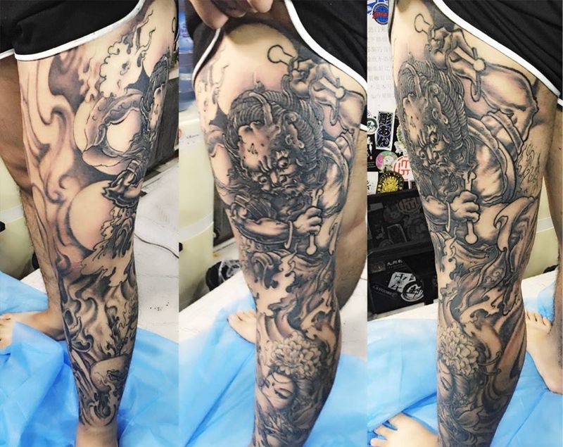 • T网红王老大花腿龙纹身图片_腿部新传统纹身图案