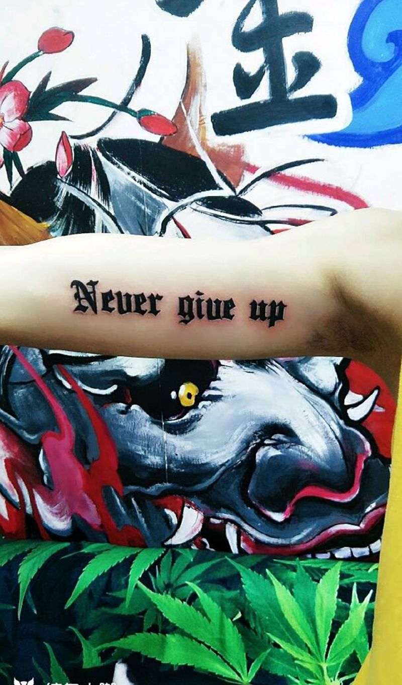 当前位置: 首页 >黑龙江省哈尔滨市纹身店-金艺堂纹身工作室纹身图案>哥特字体 永不放弃纹身图片