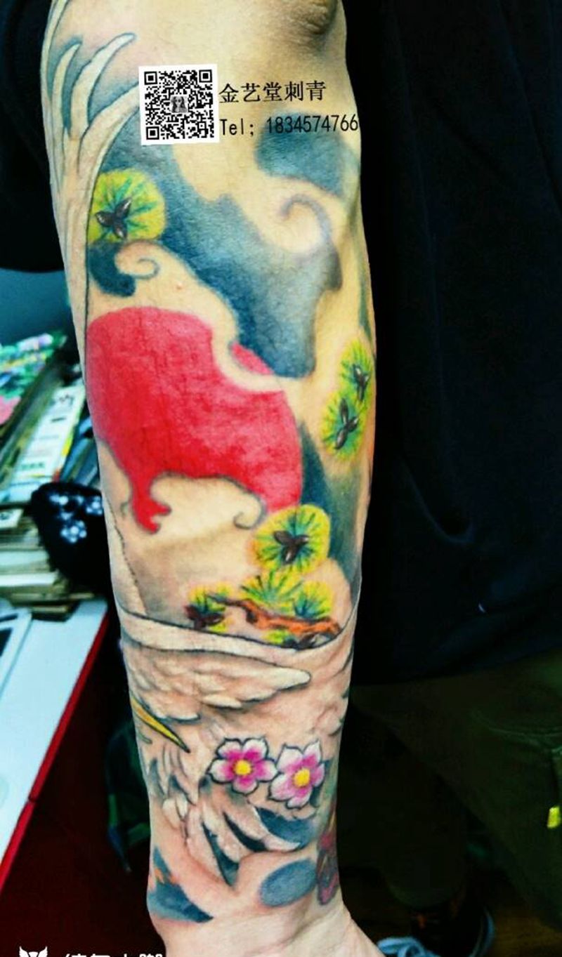 当前位置: 首页 >黑龙江省哈尔滨市纹身店-金艺堂纹身工作室纹身图案>仙鹤花臂纹身图片