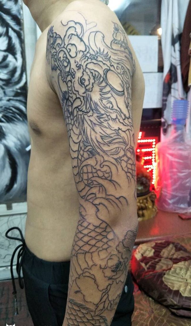 当前位置: 首页 >黑龙江省哈尔滨市纹身店-金艺堂纹身工作室纹身图案>花臂龙线条纹身图片