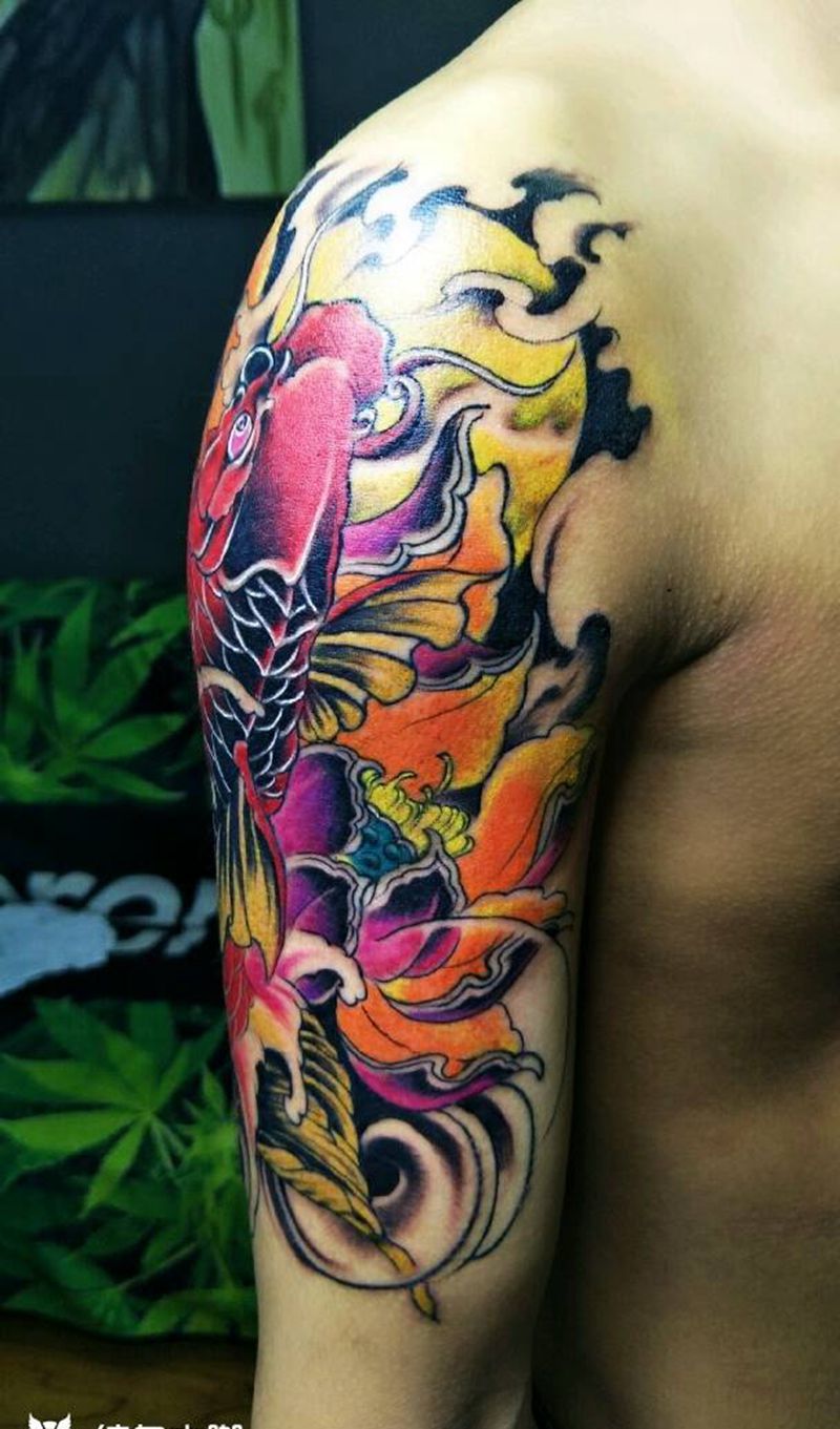 彩色鲤鱼纹身图片_手臂新传统纹身图案