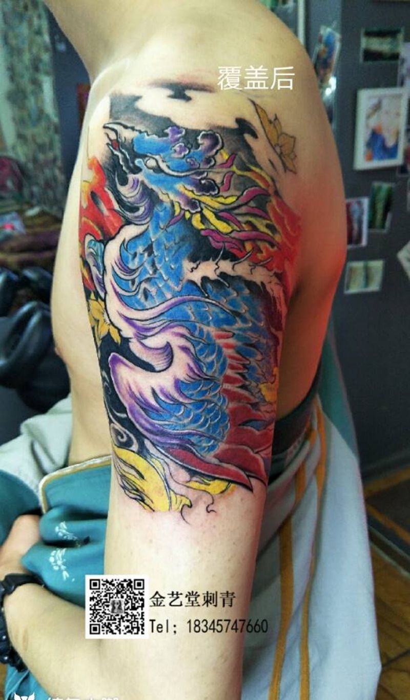 当前位置: 首页 >黑龙江省哈尔滨市纹身店-金艺堂纹身工作室纹身图案>覆盖纹身,彩色凤凰纹身图片_手臂纹身图案