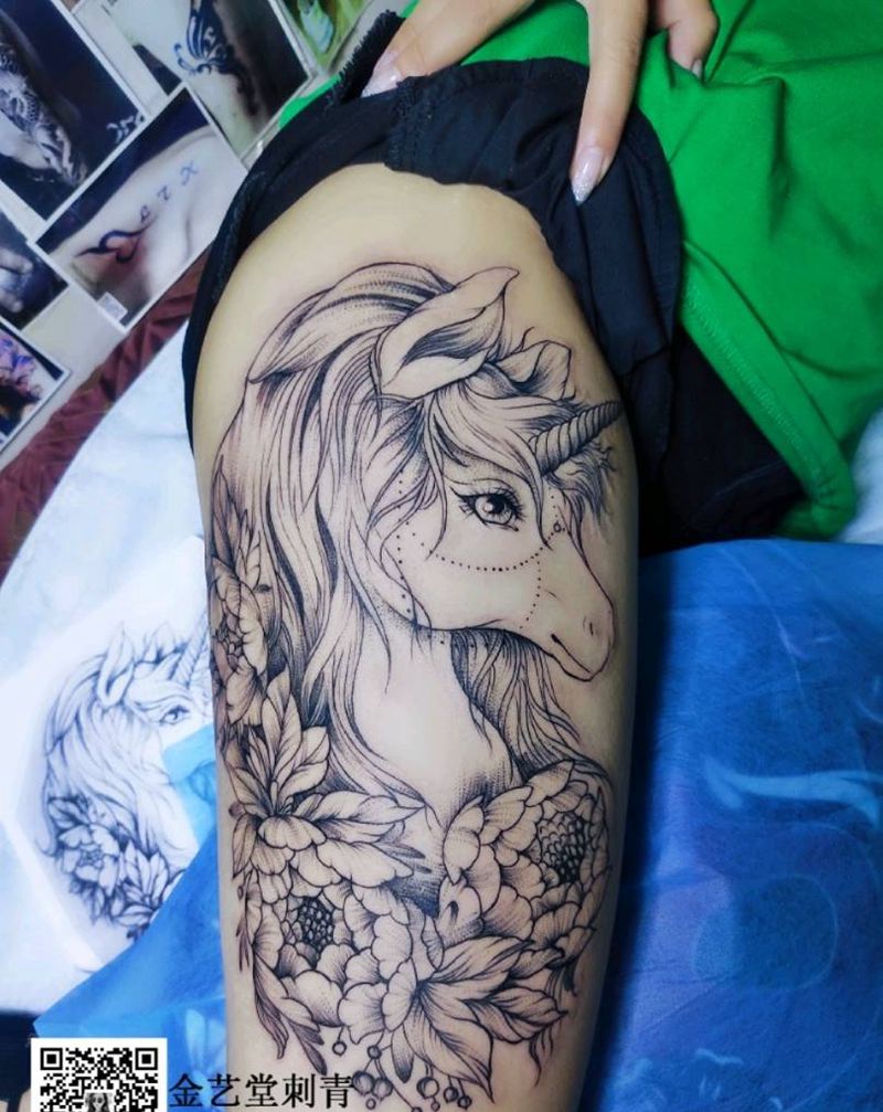 当前位置: 首页 >黑龙江省哈尔滨市纹身店-金艺堂纹身工作室纹身图案>大腿 独角兽纹身图片_腿部纹身图案