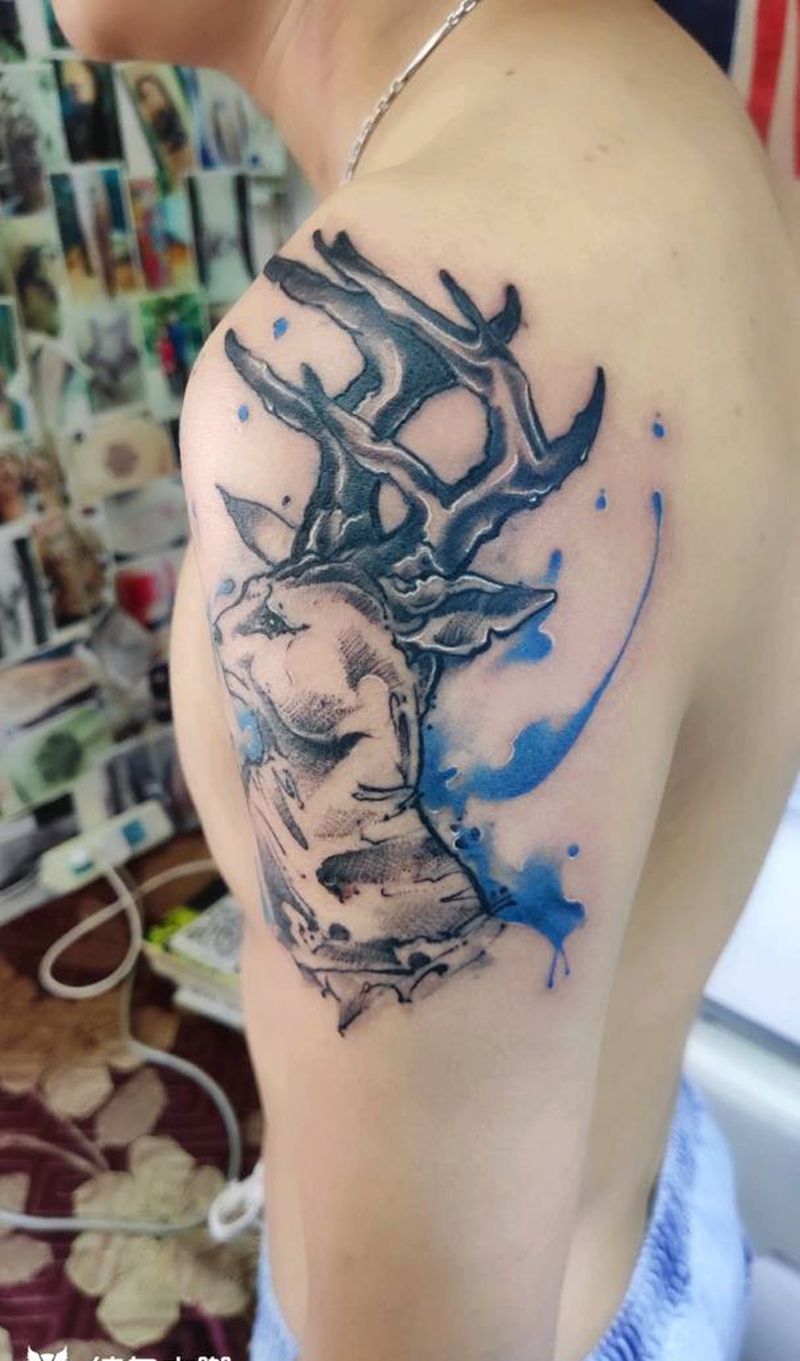 当前位置: 首页 >黑龙江省哈尔滨市纹身店-金艺堂纹身工作室纹身图案>修改小鹿纹身图片_手臂纹身图案