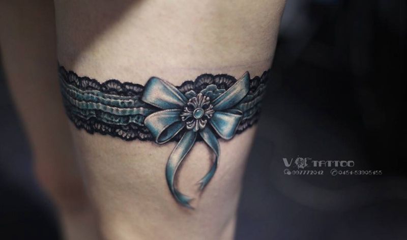 一眼入魂的美…纹身图片_成品腿部欧美写实原创哈尔滨哈尔滨V刺3D阿V蕾丝纹身图案
