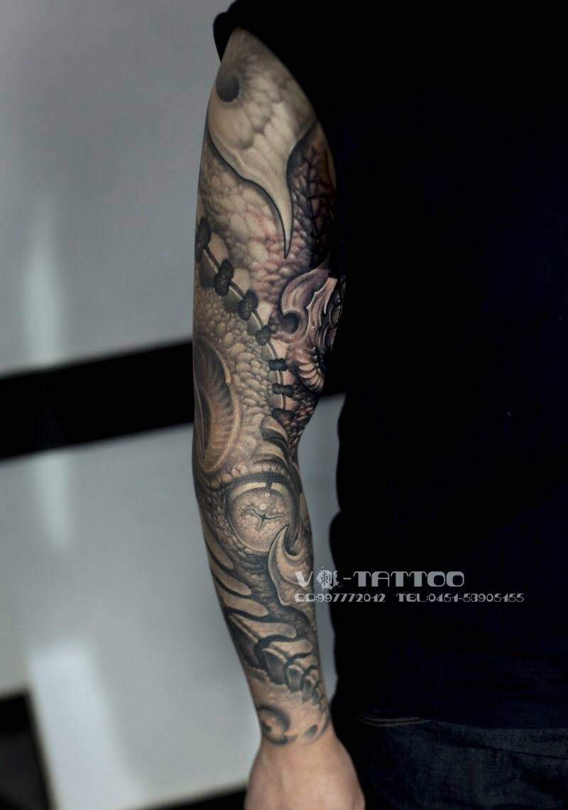 欧美3D花臂完成版纹身图片_成品手臂欧美写实几何哈尔滨哈尔滨V刺花臂3D纹身图案