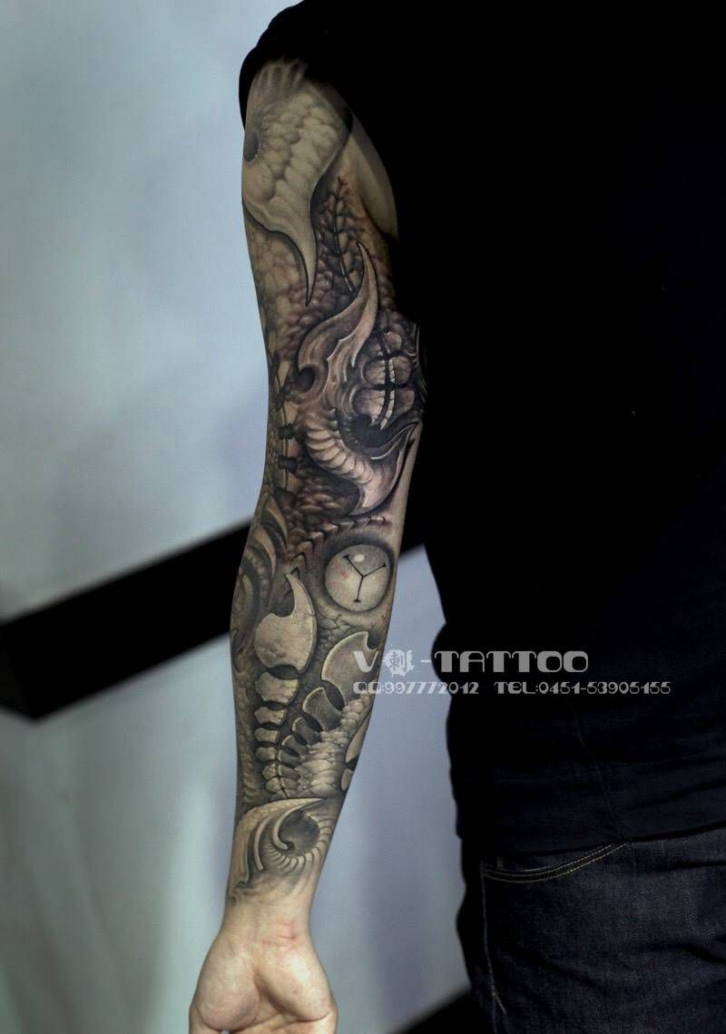 欧美3D花臂完成版纹身图片_成品手臂欧美写实几何哈尔滨哈尔滨V刺花臂3D纹身图案