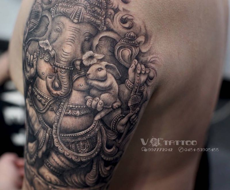 当前位置: 首页 >黑龙江省哈尔滨市纹身店-V刺tattoo纹身图案>神象象神纹身图片_成品传统鬼神宗教动物哈尔滨V刺哈尔滨阿V象神纹身图案