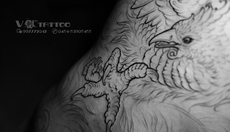 感受每一针的微妙…纹身图片_成品传统国画哈尔滨哈尔滨V刺阿V满背凤凰纹身图案