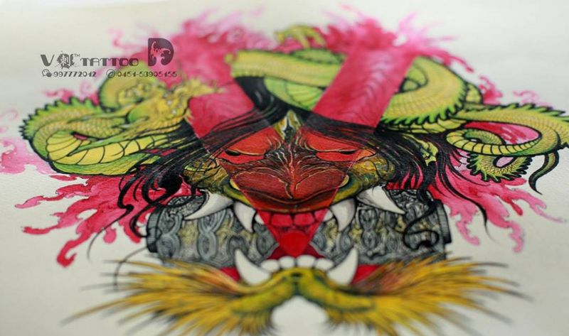 • T网红王老大花腿龙纹身图片_腿部新传统纹身图案