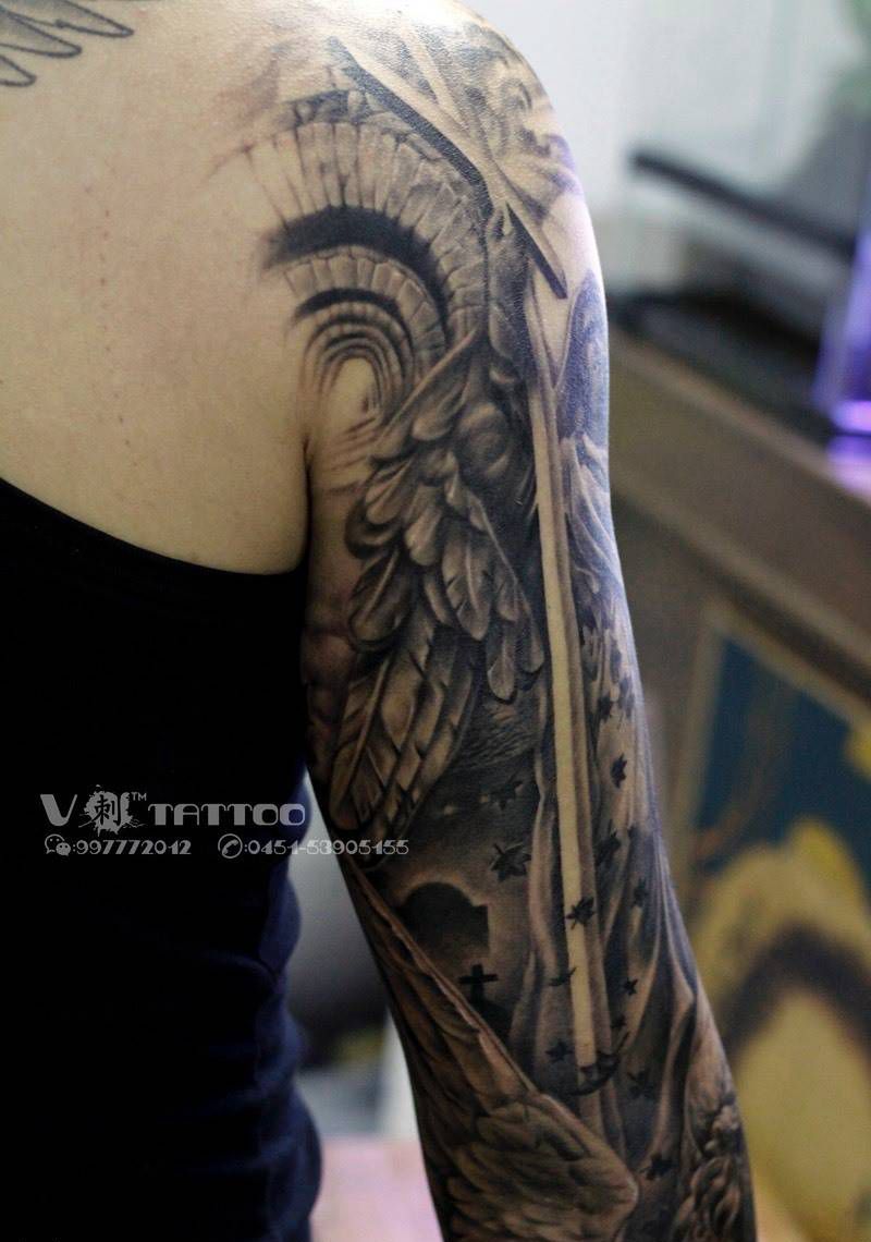 打败所有不坚定意识!by:阿V纹身图片_成品欧美手臂人物宗教哈尔滨哈尔滨V刺阿V花臂3D纹身图案
