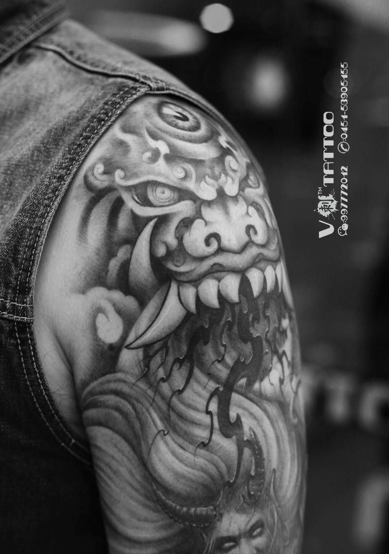 盘古!完成!纹身图片_成品手臂传统肖像写实哈尔滨哈尔滨V刺阿V花臂原创纹身图案