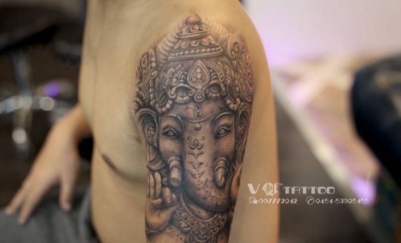 当前位置: 首页 >黑龙江省哈尔滨市纹身店-V刺tattoo纹身图案>每走一步,都是…纹身图片_成品手臂传统习俗原创哈尔滨象神石刻阿V作品肖像王子纹身图案