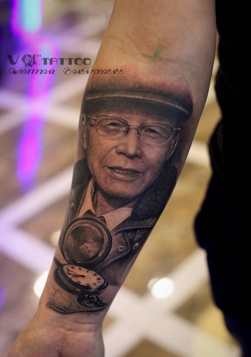 肖像作品!纹身图片_成品手臂肖像写实人物原创阿V作品哈尔滨V刺肖像王子纹身图案