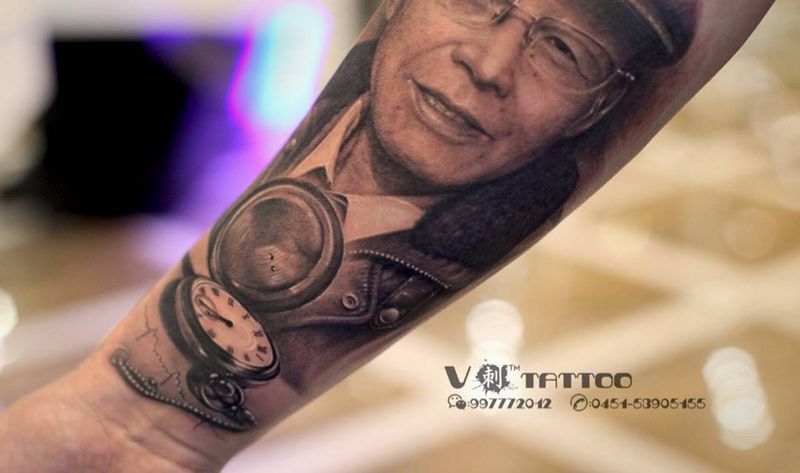 肖像作品!纹身图片_成品手臂肖像写实人物原创阿V作品哈尔滨V刺肖像王子纹身图案