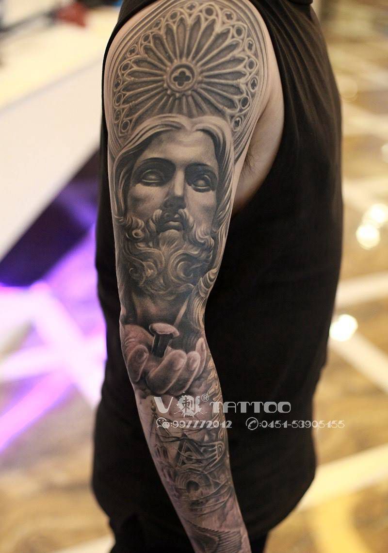 Tattoo by 阿V纹身图片_成品欧美阿V作品哈尔滨V刺肖像王子肖像写实花臂耶稣纹身图案