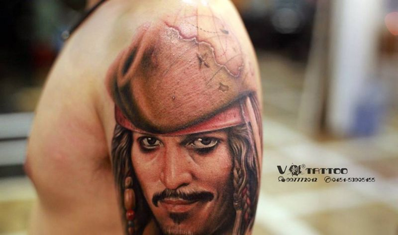又见德普!纹身图片_肖像写实人物阿V作品哈尔滨V刺肖像王子写实人物肖像纹身图案