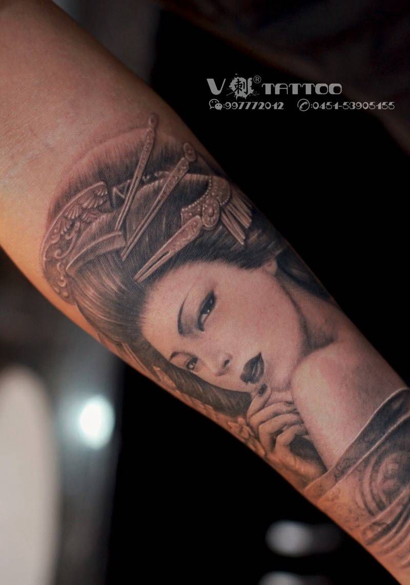 艺妓!纹身图片_手臂肖像传统阿V作品哈尔滨V刺肖像王子肖像人物艺妓纹身图案