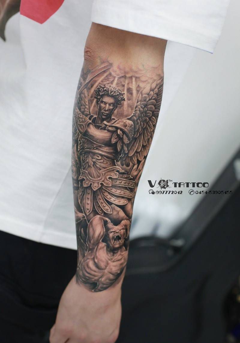 可圈可点!by:阿V纹身图片_成品手臂欧美写实阿V作品哈尔滨V刺肖像王子翅膀翅膀纹身图案
