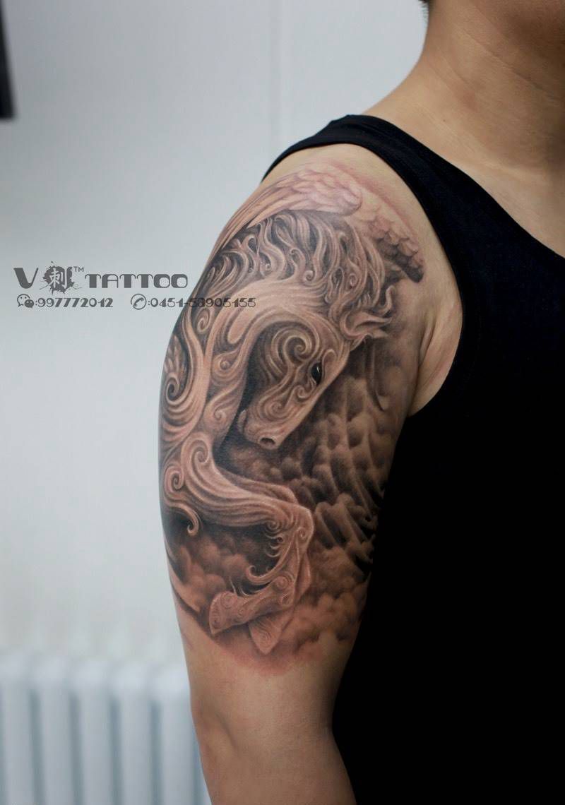 当前位置: 首页 >黑龙江省哈尔滨市纹身店-V刺tattoo纹身图案>天马!纹身图片_成品V刺 肖像王子阿V作品动物天马欧美写实肖像纹身图案