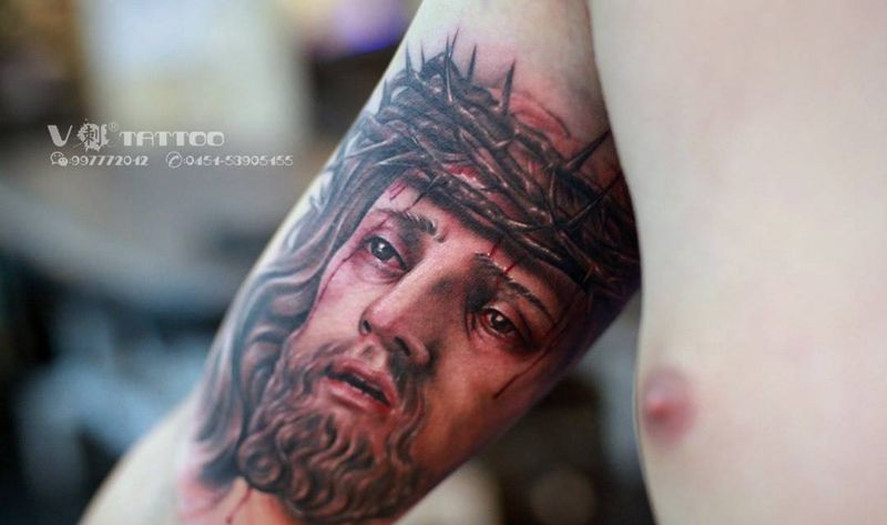 当前位置: 首页 >黑龙江省哈尔滨市纹身店-V刺tattoo纹身图案>哈利路亚!纹身图片_肖像欧美人物阿V作品V刺肖像王子哈尔滨肖像人物耶稣纹身图案