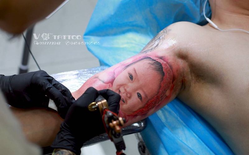 晚安…宝贝!纹身图片_肖像写实人物原创V刺 肖像王子阿V作品写实纹身图案