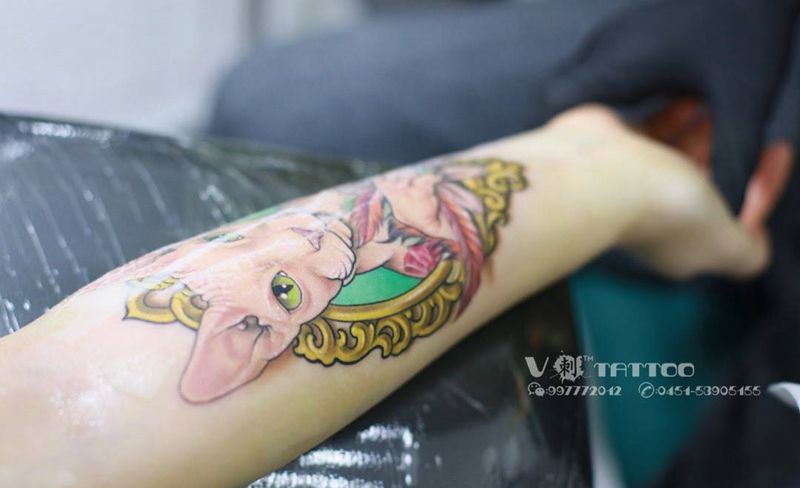 喵儿…纹身图片_写实原创V刺 肖像王子写实阿V作品动物猫欧美无毛猫纹身图案
