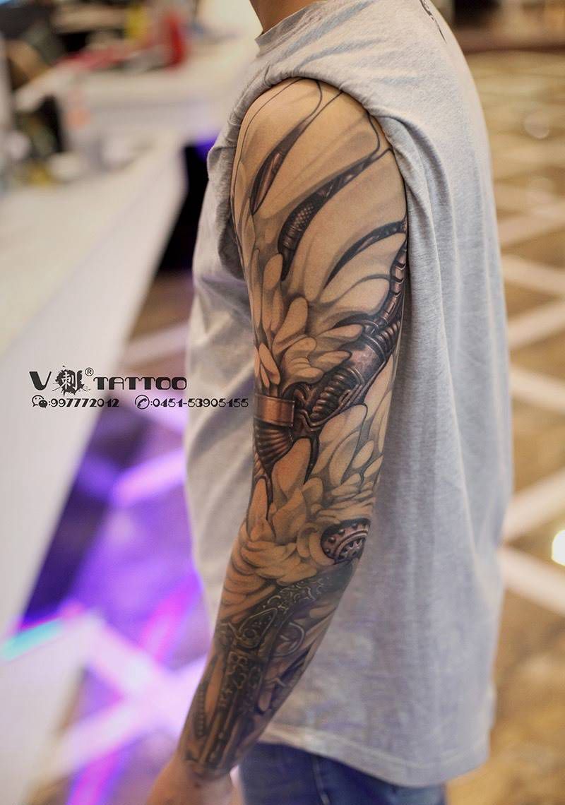 当前位置: 首页 >黑龙江省哈尔滨市纹身店-V刺tattoo纹身图案>机械臂纹身图片_手臂欧美写实机械臂机械阿V作品纹身图案