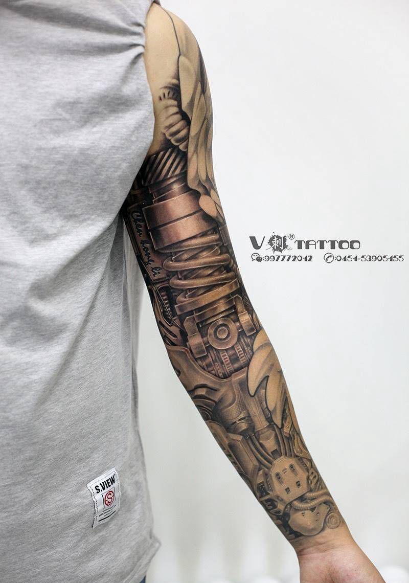 当前位置: 首页 >黑龙江省哈尔滨市纹身店-V刺tattoo纹身图案>机械臂纹身图片_手臂欧美写实机械臂机械阿V作品纹身图案