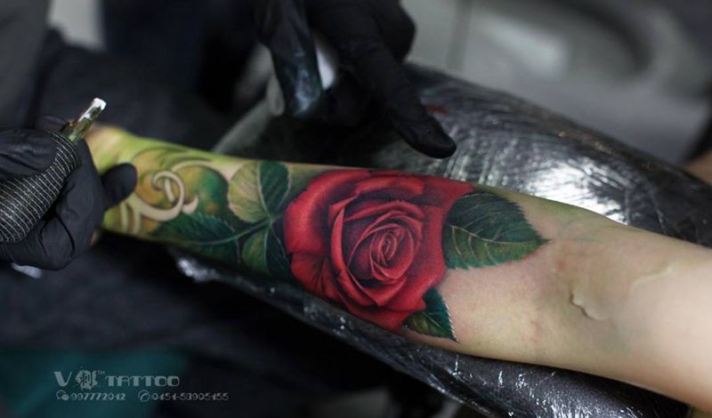 Rose!纹身图片_成品手臂写实V刺 肖像王子阿V作品玫瑰花纹身图案