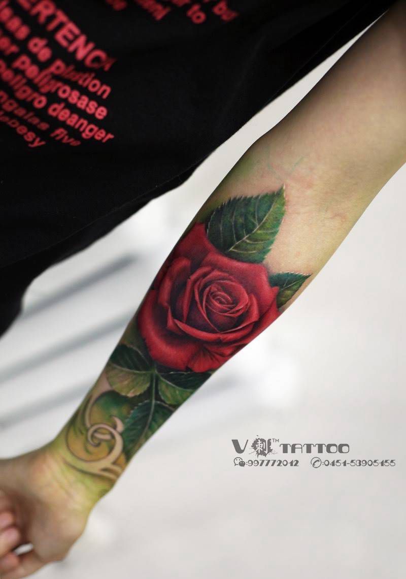 当前位置: 首页 >黑龙江省哈尔滨市纹身店-V刺tattoo纹身图案>Rose!纹身图片_成品手臂写实V刺 肖像王子阿V作品玫瑰花纹身图案
