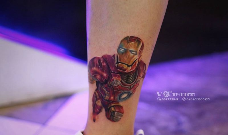 漫威包小腿未完成…纹身图片_腿部欧美写实漫威钢铁侠阿V作品纹身图案