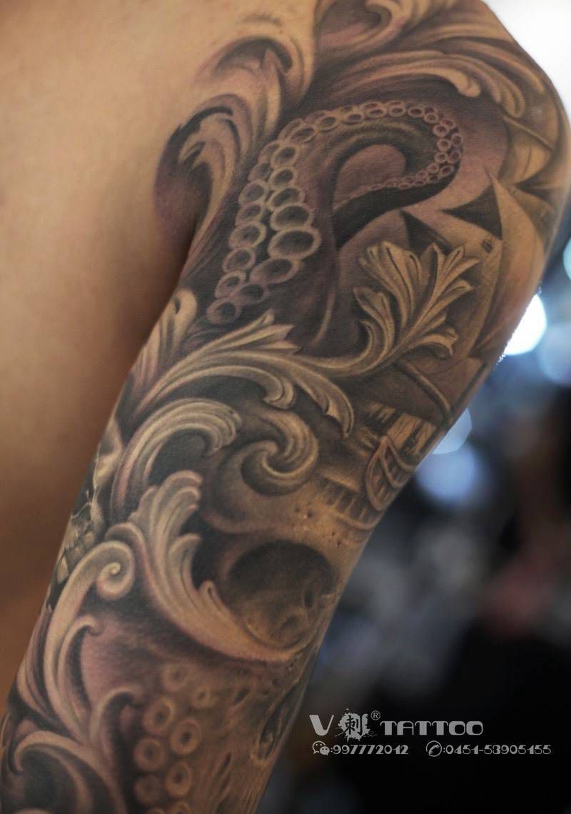 当前位置: 首页 >黑龙江省哈尔滨市纹身店-V刺tattoo纹身图案>欧美花臂完成✅纹身图片
