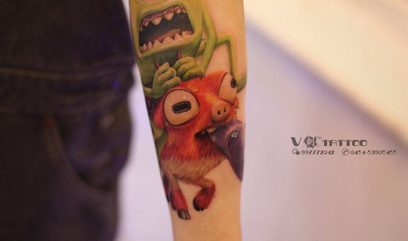 怪兽大学!纹身图片_成品欧美哈尔滨V刺 肖像王子阿V作品写实纹身图案