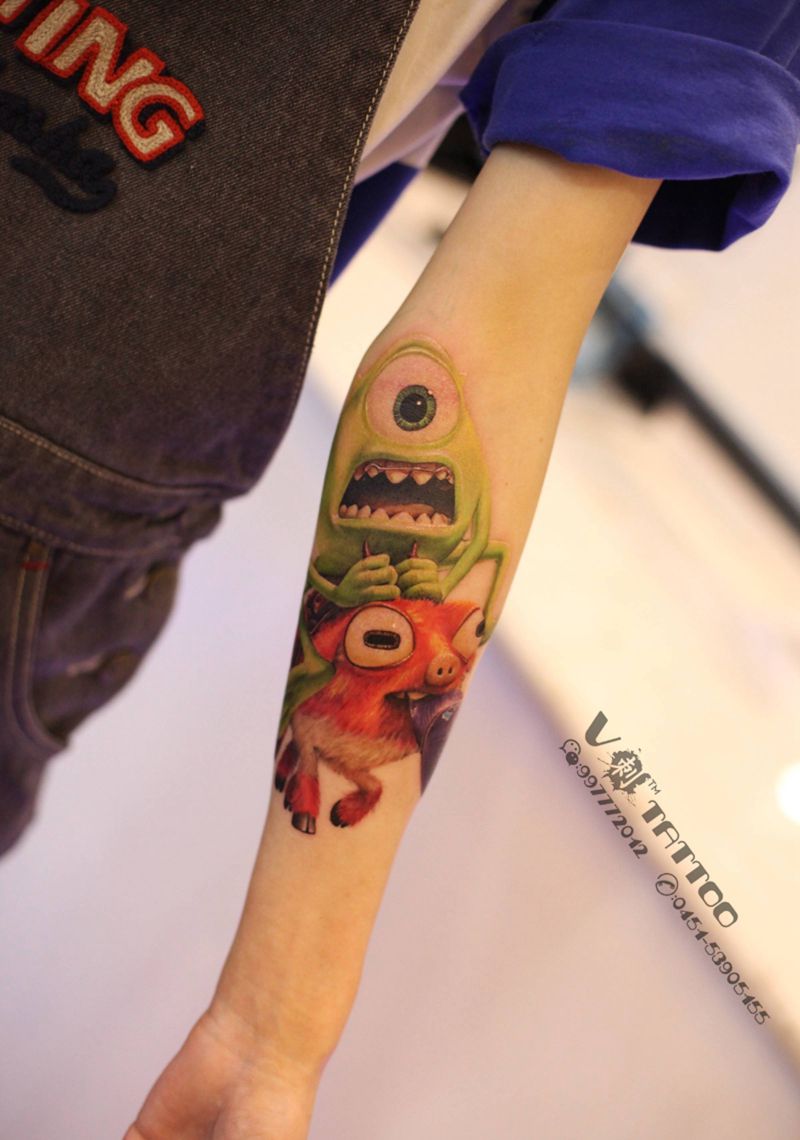 怪兽大学!纹身图片_成品欧美哈尔滨V刺 肖像王子阿V作品写实纹身图案