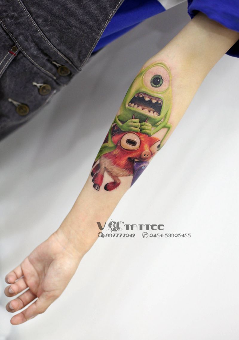 怪兽大学!纹身图片_成品欧美哈尔滨V刺 肖像王子阿V作品写实纹身图案