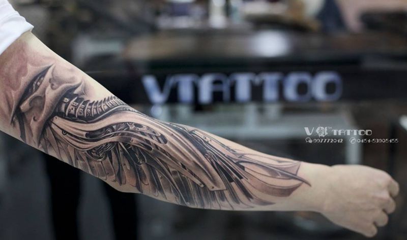 机械翅膀!纹身图片_原创V刺 肖像王子阿V作品花臂翅膀机械3D哈尔滨写实纹身图案